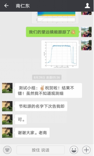 姜鵬展示了自己與南仁東的最次一次微信對話: